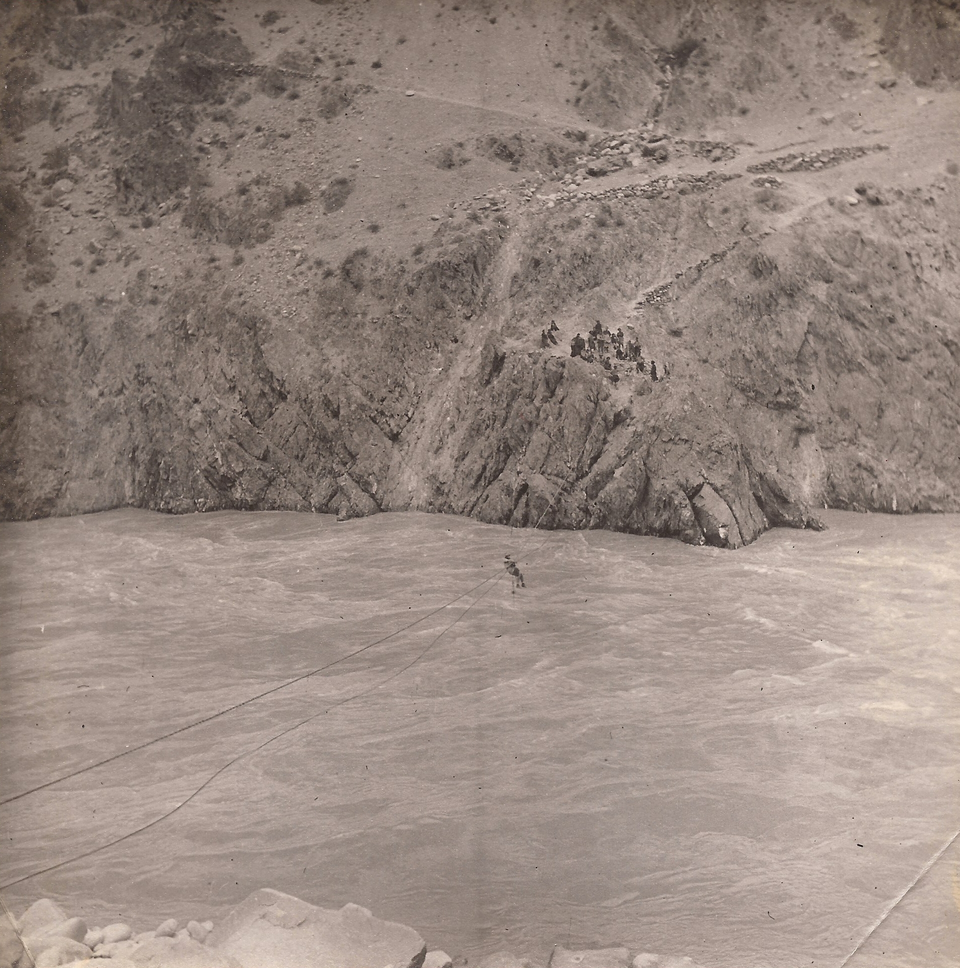 X(14) Rope Bridge over Salween at Situkha showing good abut(t)ment for permanent bridge (2nd suggested route)
