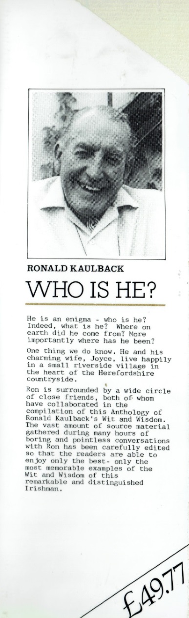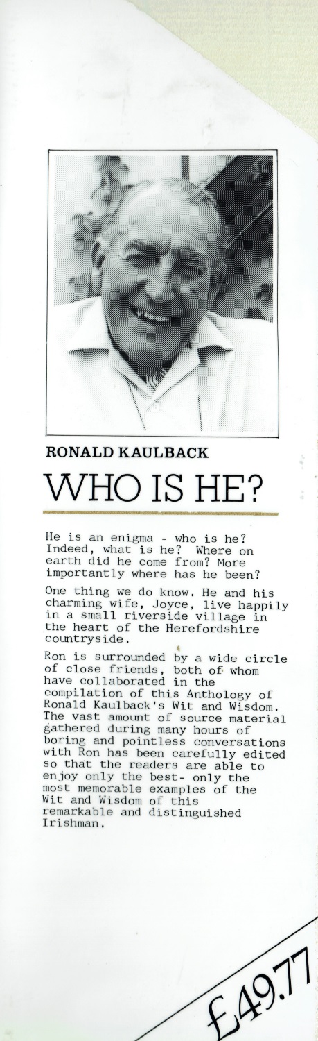 The delicate reference to condom trafficking is an allusion to a discreet benefit that Ron had also provided to the local community, in addition to the craic and strong drink, during the era in which family planning was frowned upon by both Church and Dáil.