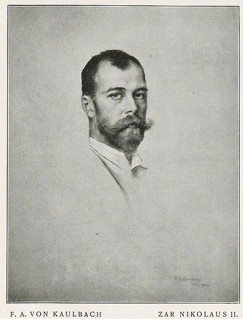 Of such possible portraits, only one, that of the Tsarina (earlier depicted), is to be found on the internet. Perhaps the humiliating Russian defeat by Japan in the war of 1904-05, and the so-called February Revolution in early 1905, distracted the Tsar, or Kaulbach himself, from completing this quite major artistic commission.