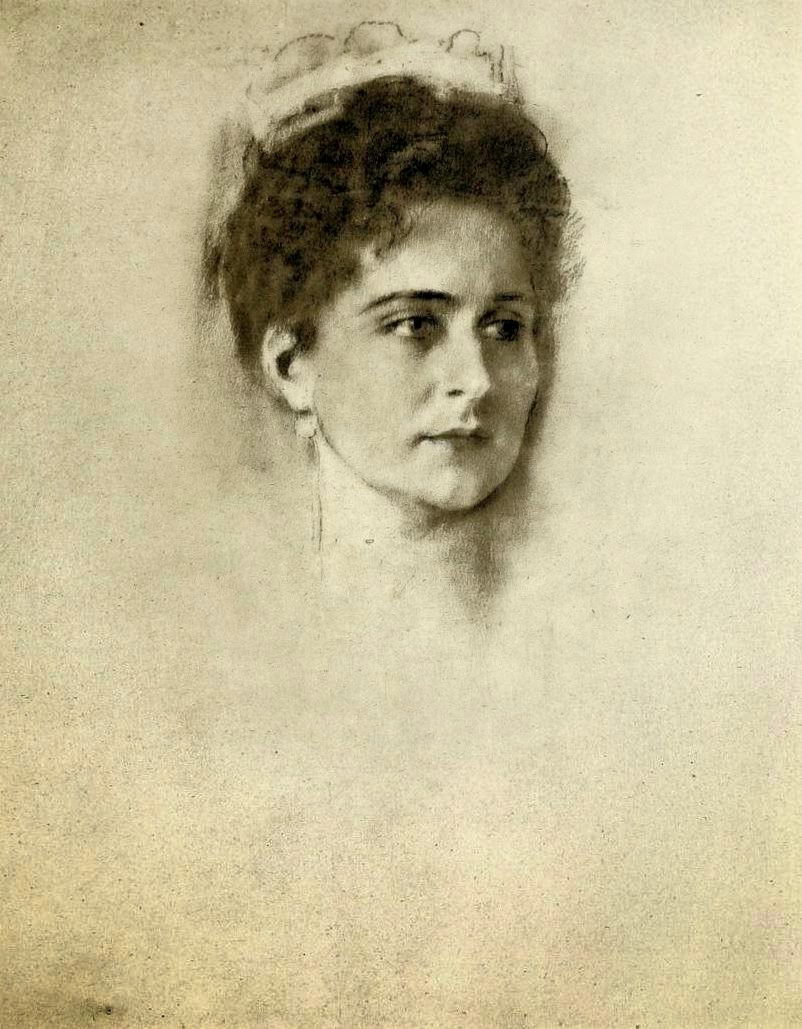 Sometime during late 1903, at the evident request of the Russian Tsar or his younger sister, Kaulbach must have journeyed to St Petersburg, or possibly nearby Tsarskoye Selo, or in actual fact Skierniewice, where he produced some very attractive studies of the Romanov ruling family, presumably as preliminaries to a full set of family portraits.