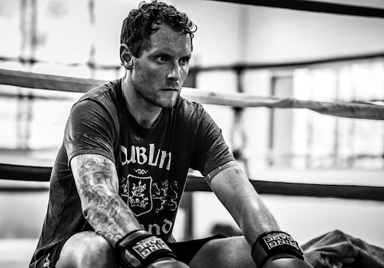 Seen below after a heavy sparring session, Simon in thoughtful mood: