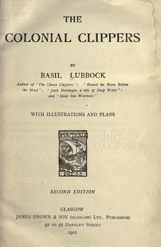She generally took about 95 days coming home via the Cape, calling in at Capetown and St. Helena, as it was the custom with ships carrying passengers.