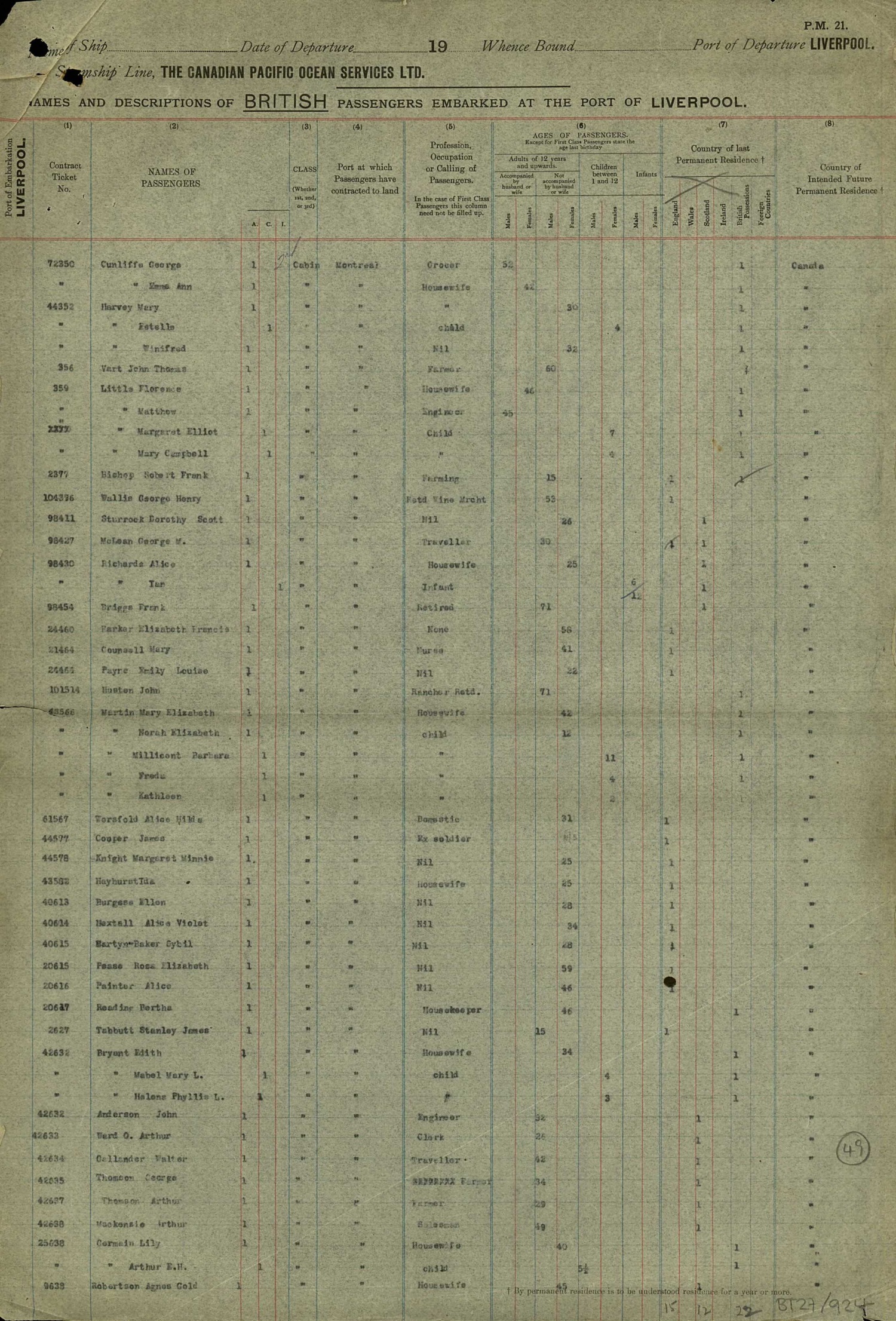 B They arrived by SS Scotia at Nova Scotia from Liverpool, on 1 May 1920, as per the passenger list: