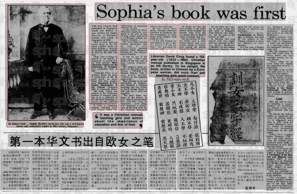 Thanks to a recent contact from Sharon Casey, what also has now emerged, moreover, is that Sophia put her Chinese literary skills to great effect, by writing and publishing a treatise entitled "Three-Character Classics for the Instruction of Females", aka "Trimetrical Classics for Girls", in 1832 (some 5 years before she opened the school, oddly enough). Naturally, it was biased towards the importance of education, good conduct, and Christianity, but crucially it was composed in three-character (ie three ideogram / logogram) sentences, in the style of traditional Chinese early-readers for children.