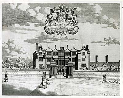 This depiction of the hall is from the 1686 engraving by Michael Burghers, published in Robert Plot's The natural history of Staffordshire (Oxford, 1686).