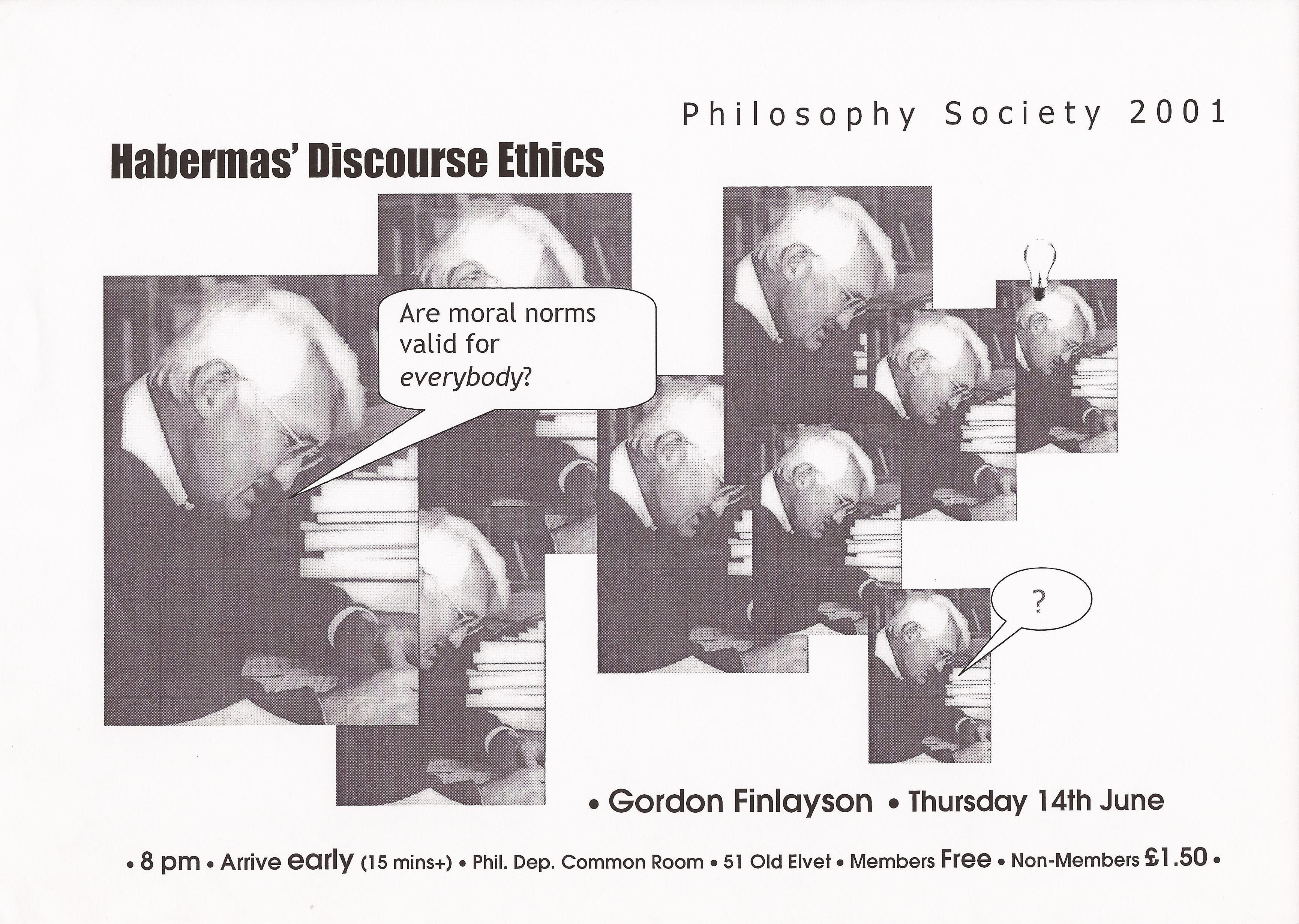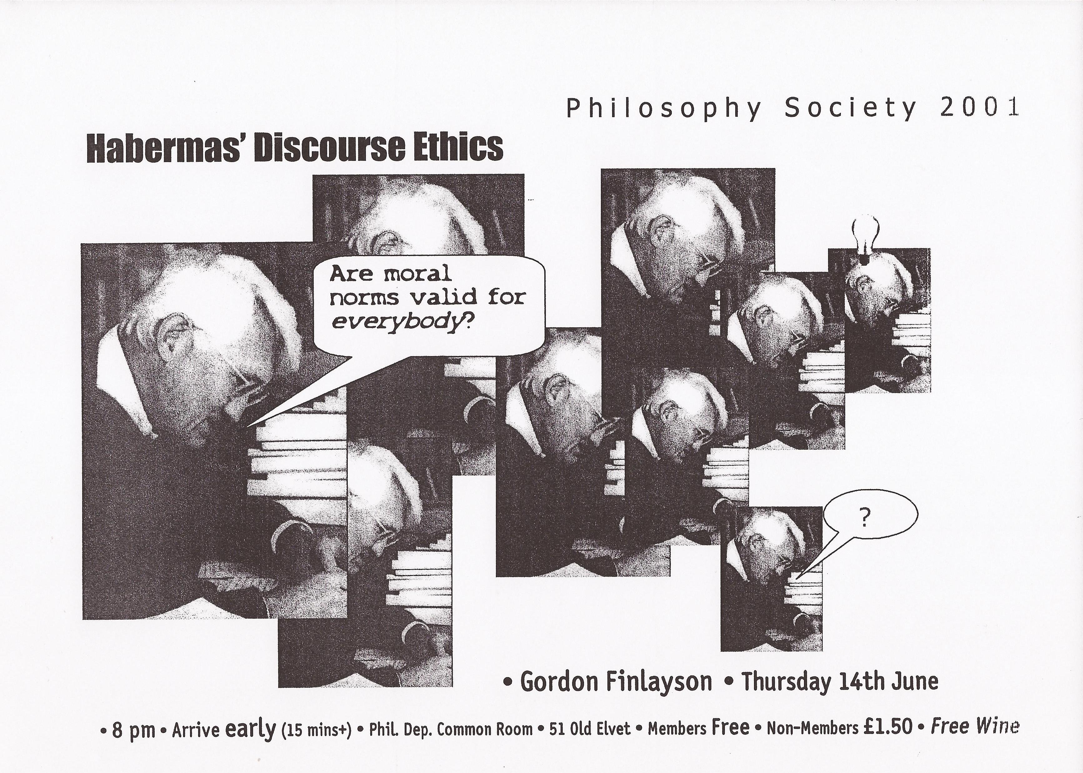 All I'd say at the moment is that the Department of Philosophy lived up to their billing, and were extremely kind and tolerant of his idiosyncrasies. And that, (I think) towards the end of the second summer term, in Jun 2001, he took charge of the Philosophy Society. In fact, resuscitated and reinvigorated it.