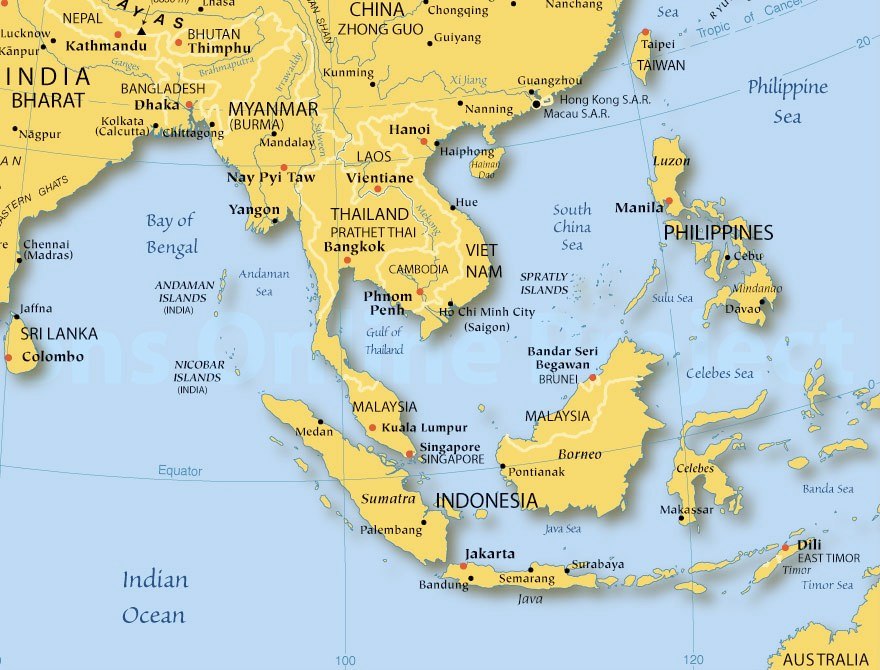 | Indonesia | Sumatra Java Southern Borneo Western New Guinea Innumerable smaller islands |