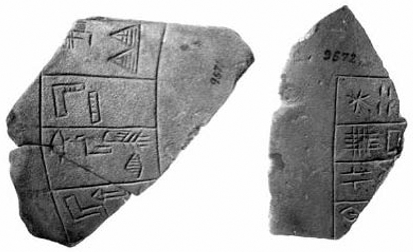 Example of Sumerian pictograms and Phoenicia Cadmean letters.