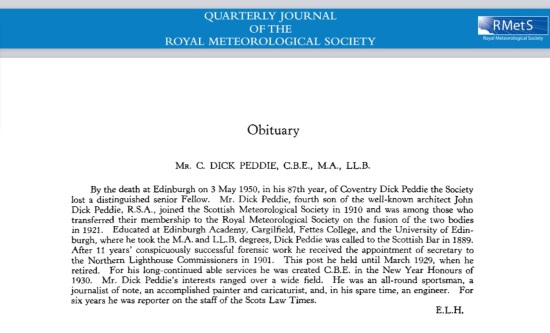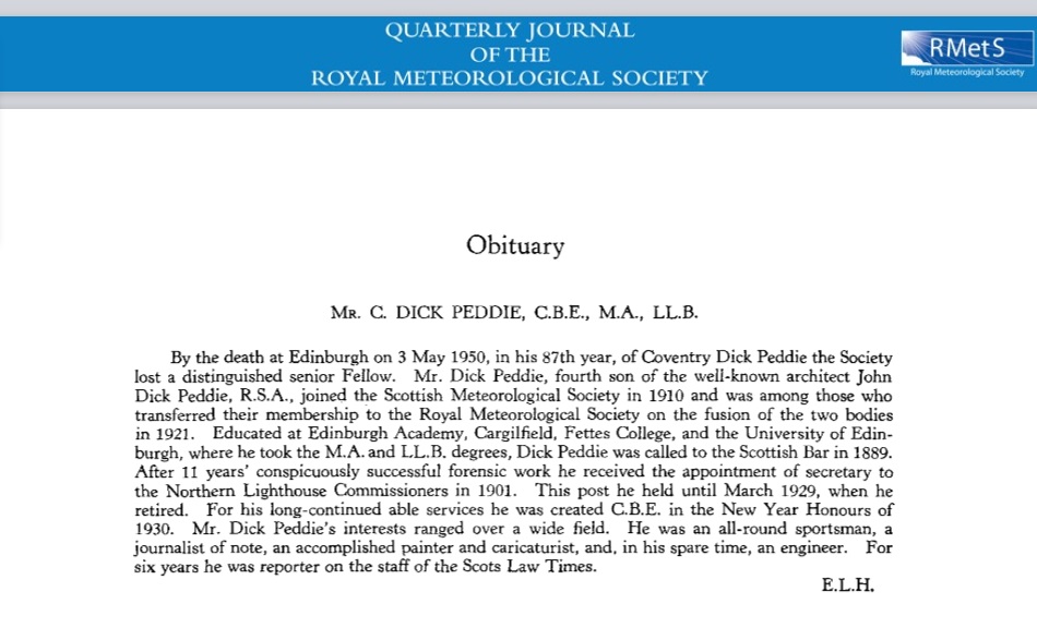Coventry Dick-Peddie, as the chairman of the Northern Lighthouse Heritage Trust recently remarked, with tongue in cheek of course, was responsible for keeping the Stevenson family under control during his tenure as Secretary of the Northern Lighthouse Commissioners from 1901 until 1929.
