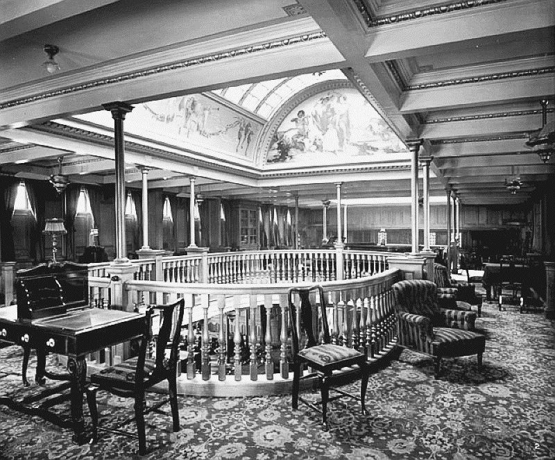First Class featured some elegant lounges having beautifully timbered clad walls with high arched ceilings that went up into the deck above in several venues. Below is a photo gallery of her wonderful facilities and for her days, they were rather special for what was considered a small liner.