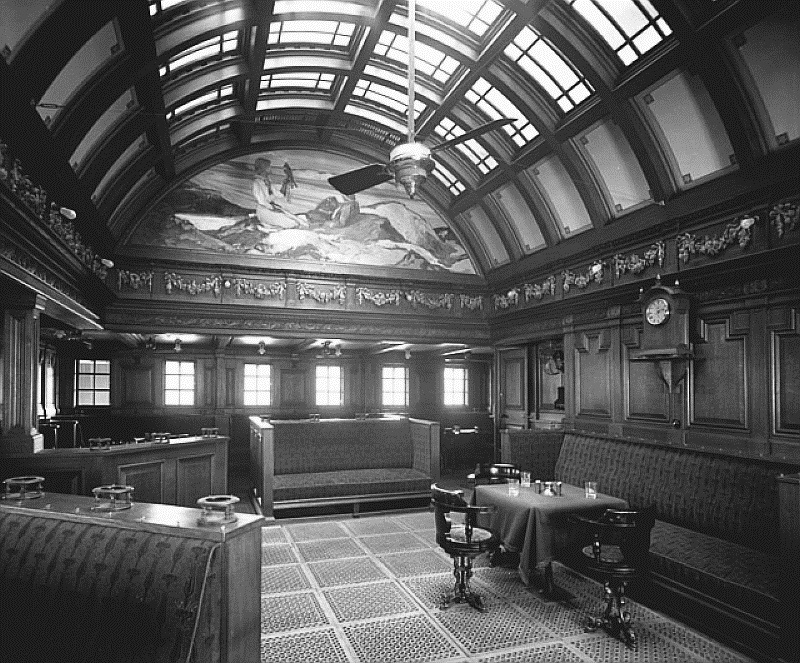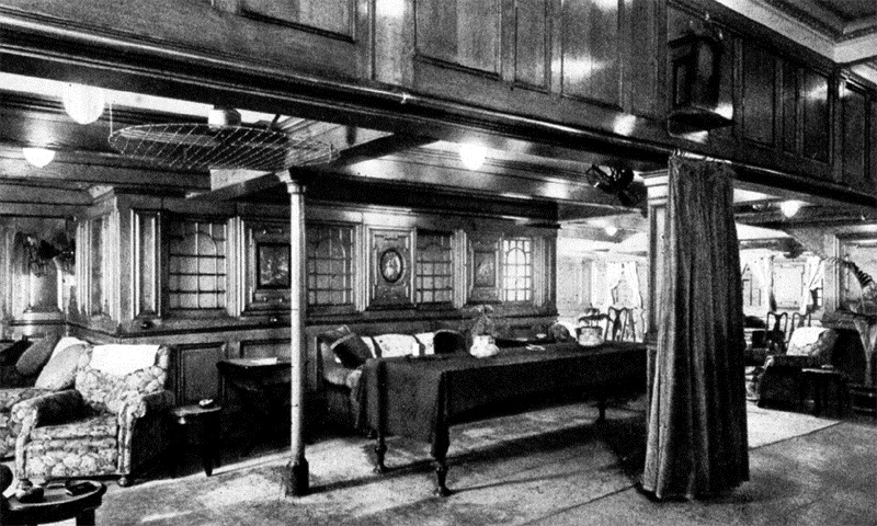 The Smoking Room was richly decorated and the walls clad in rich timbers, and there was a great deal of woodcarvings in the room.
