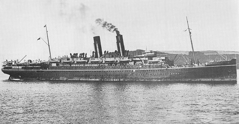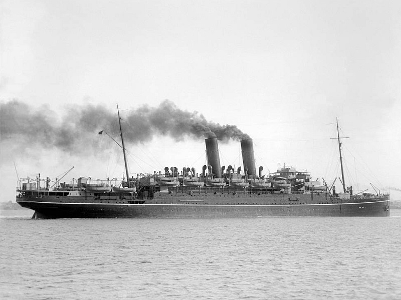 However with World War I continuing her regular voyages were soon interrupted, as the ship was requisitioned by the Royal Navy to be used as a transport ship. She received a rapid transformation to be able to carry a good number of troops, yet she retained some First Class accommodations for and venues for a few passengers, VIPs and high-ranking officers etc. Additional lifeboats were added, thus all, but two were double banked. During this time she would carry Australian, British, French & Indian troops operating services to and from the Middle East, India and other war arenas.
