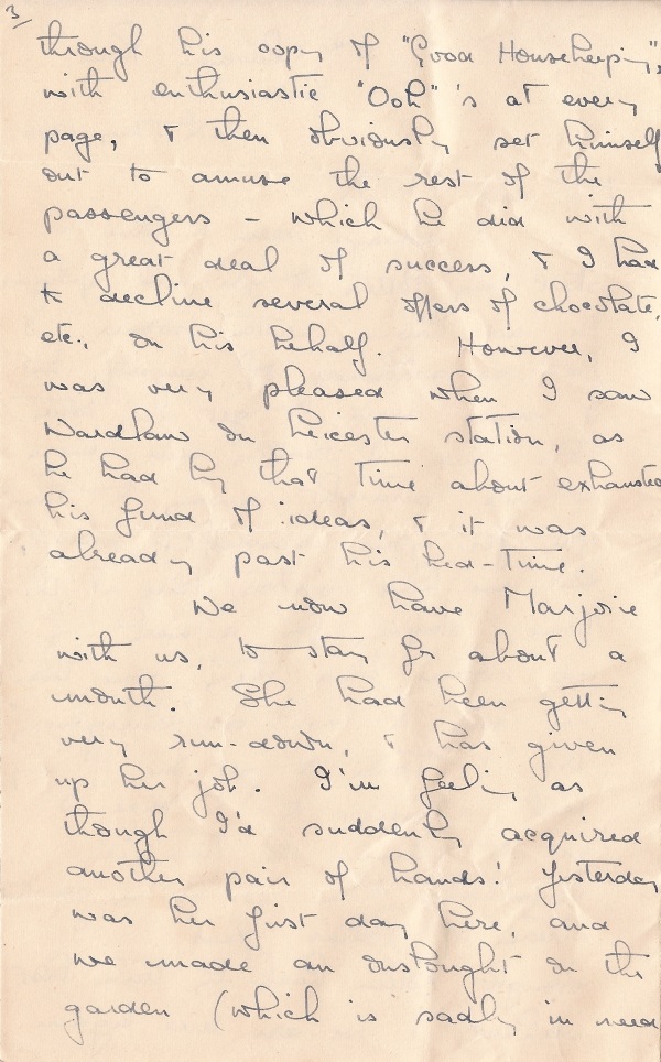 There had been a sort of interregnum, during which Terry and Gwyneth, a couple of ex art students, moved into the back room for a while. He was tall, bearded and thin, and she was smooth and plump. They lived on social security, and every Friday (benefits day) she would return from the little local supermarket laden with goodies, and start baking biscuits, loaves, and cakes etc, whilst the rest of us stood round sniffing like Bisto Kids at the tantalising aromas. Then they would disappear into the back room for a feast, followed by a noisy coital celebration.