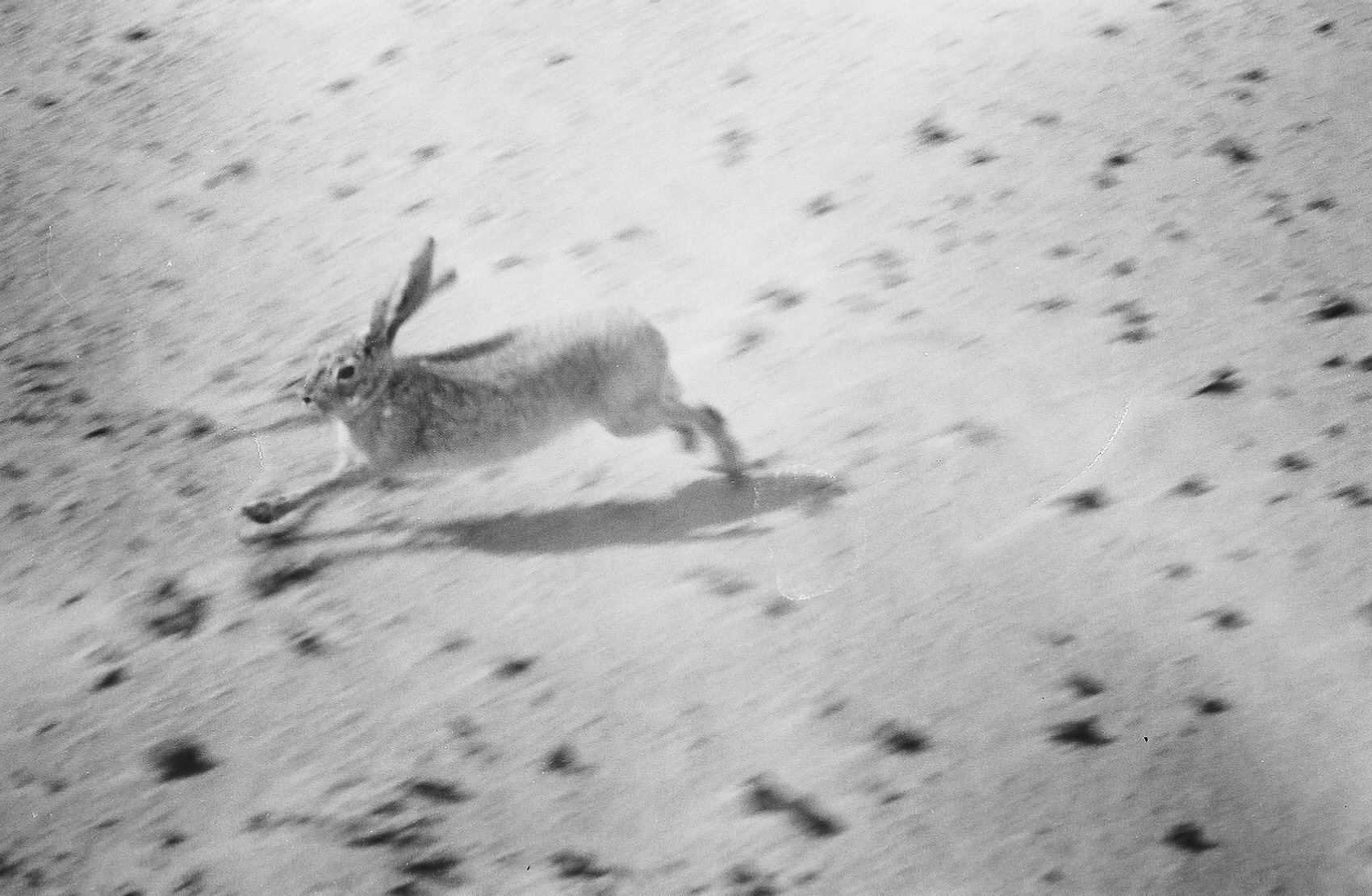 Along with better hearing, the conventional thinking is that big ears have a lot to do with keeping cool, something exceedingly important for a smallish animal that, for whatever evolutionary reason, lives its life on the surface of an unforgiving desert. Dr Drew, a biologist, would say – in fact, has said, in his doctoral dissertation – that the hare "lives on the very fringe of survivability" with respect to its habitat and above-ground habit. He sometimes wonders why a desert hare hasn't evolved with a real ability to burrow, like rabbits. Life would surely be easier.