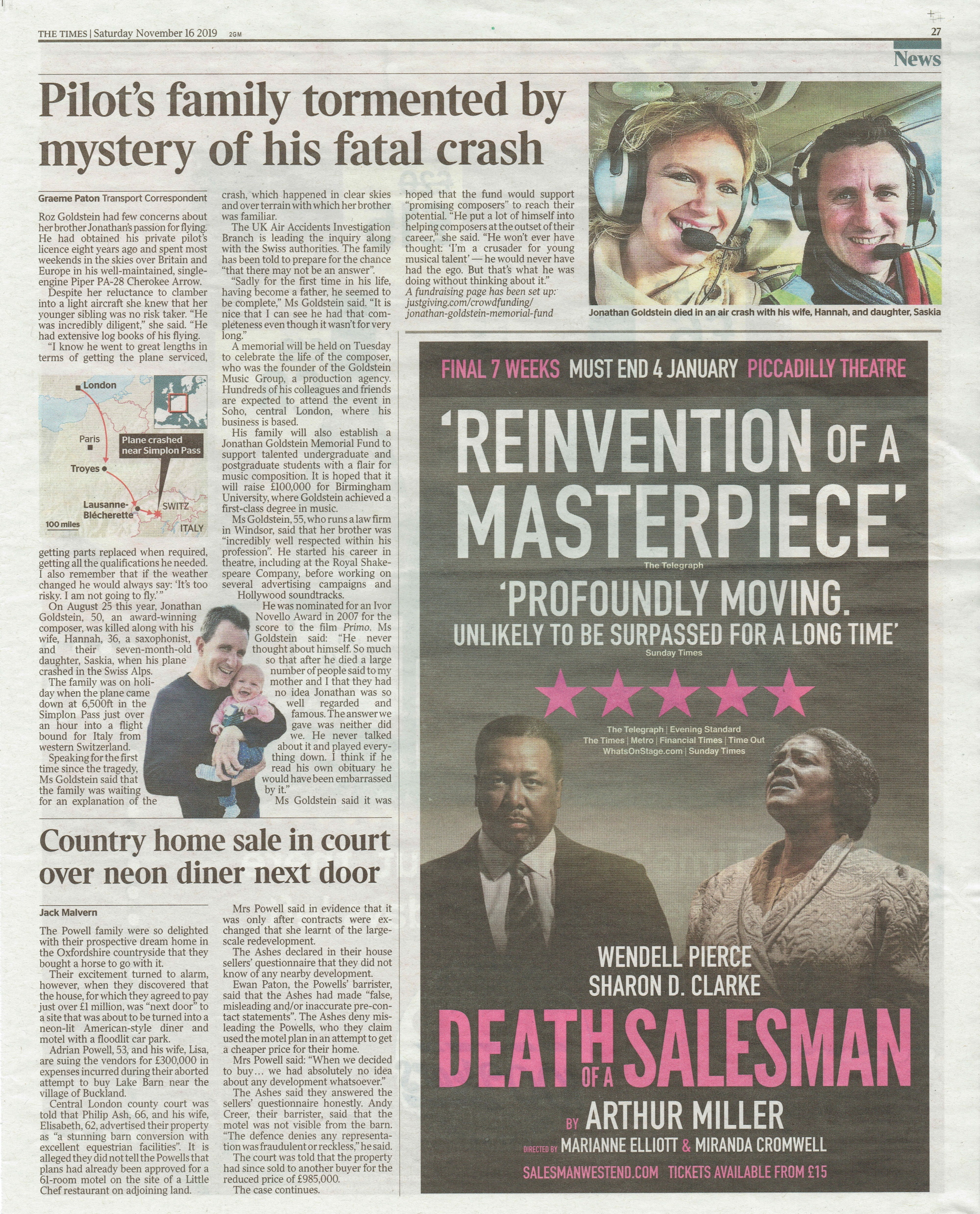 The recent (August 2019) fatal crash of a young British family has rekindled painful memories of Simon and his colleague’s fatal accident just over four years ago, in strikingly similar circumstances and location. Hopefully the authorities won’t take quite so long to come to a conclusion as to what happened this time as they did last, and one wonders whether any conclusions can be drawn as to a common factor in these two tragic accidents, differing though they are in the type of aircraft involved.