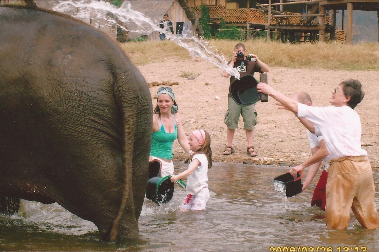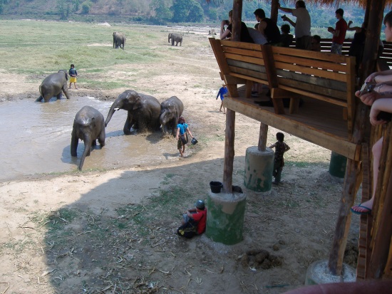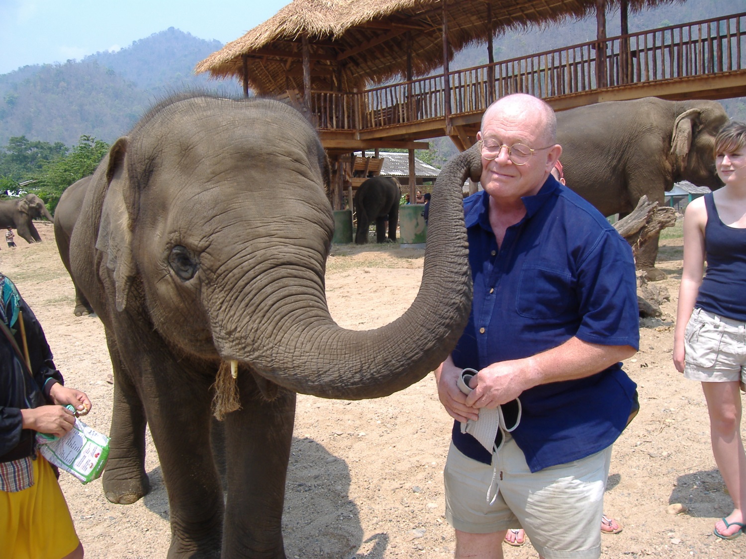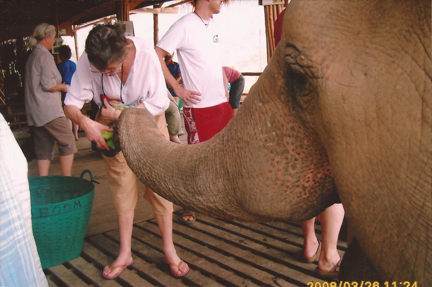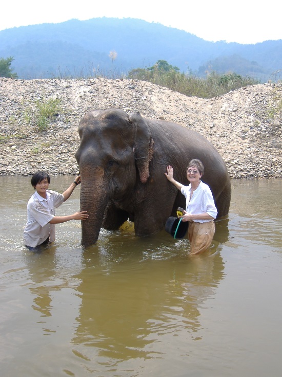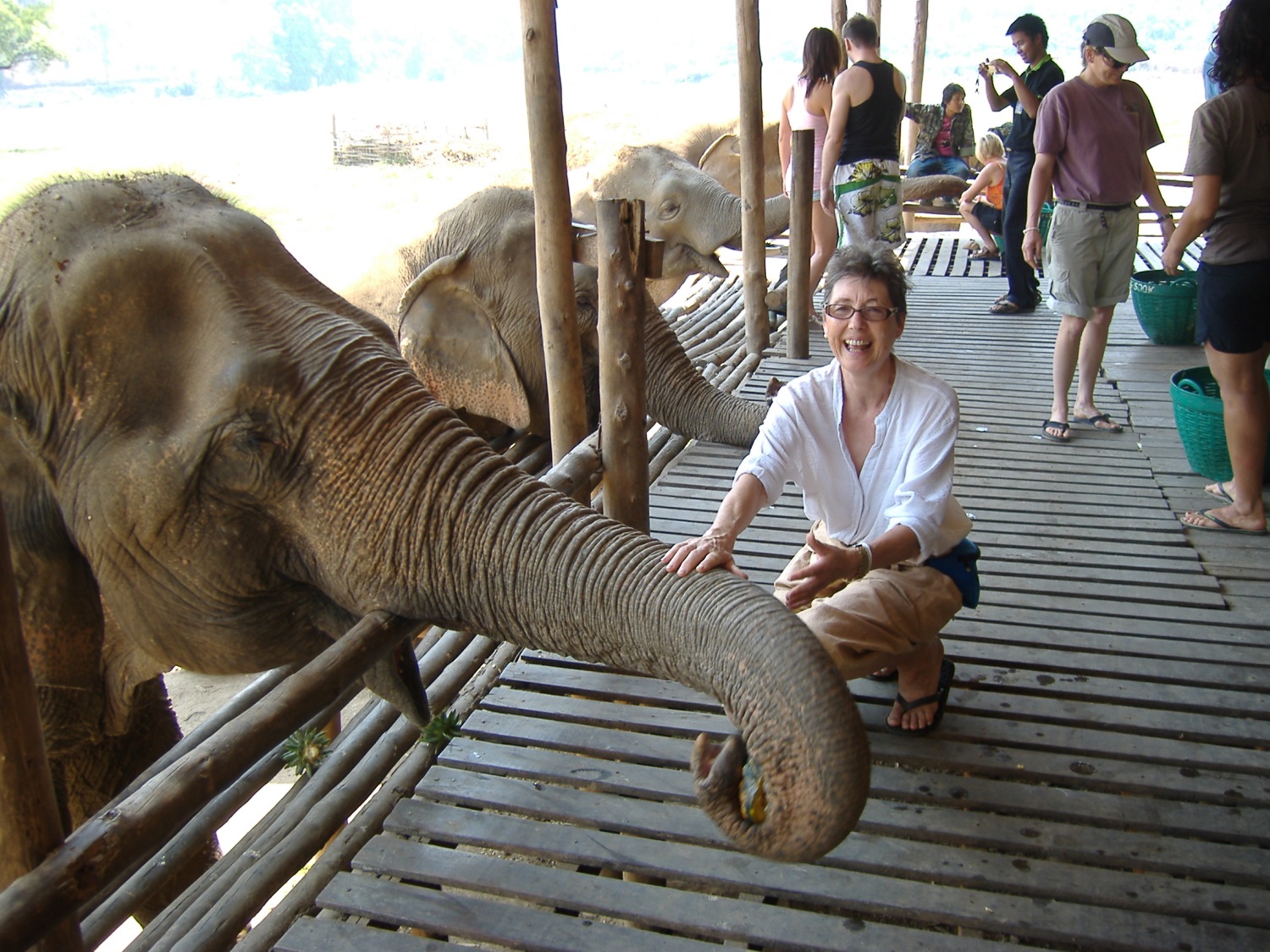 As well as travelling around Thailand teaching the humane treatment of Asian elephants, Lek has founded the Elephant Nature Park, an amazing place comprising forest, open areas and river, which is now home to about 30 rescued elephants. It is one-and-a-half hours' drive from Chiang Mai, Thailand's second city, in the north-west corner of Thailand. Robin (my husband) and I spent some days there, living and working with the elephants, and learning about these wonderful creatures.