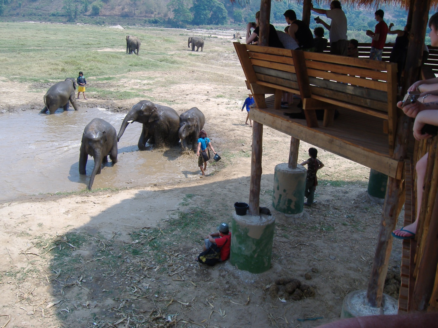 Lek's elephants will never work or be abused again. No longer do they have to paint pictures with their trunks, play the drums, or perform demeaning circus tricks. They are not made to carry heavy benches on their backs (which can deform or even break an elephant's spine), and they are no longer forced into submission with cruel implements such as "the hook". They can now live the life of an elephant, roaming unfettered, browsing and bathing, and socialising in their family groups.