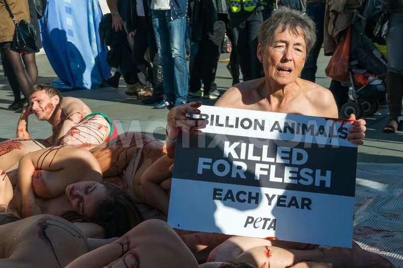Sonia Waddell strips off for the PETA protest in Trafalgar Square