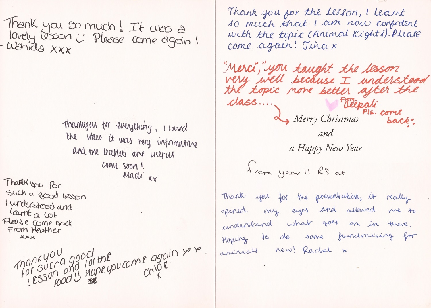 And it is always nice to be asked back again the following year! (Please click here for a list of schools at which I have given talks so far.) If you are interested in giving talks to young people, please visit the Animal Aid website.