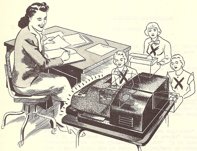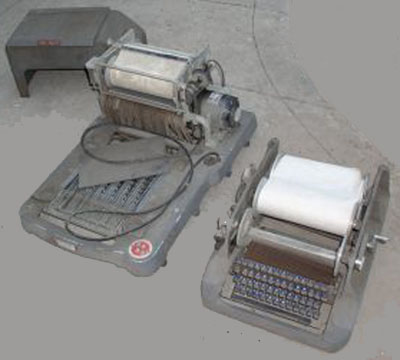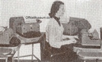 Robotyper. Right unit made paper rolls. Form letters were produced by a typewriter resting on the left unit. |