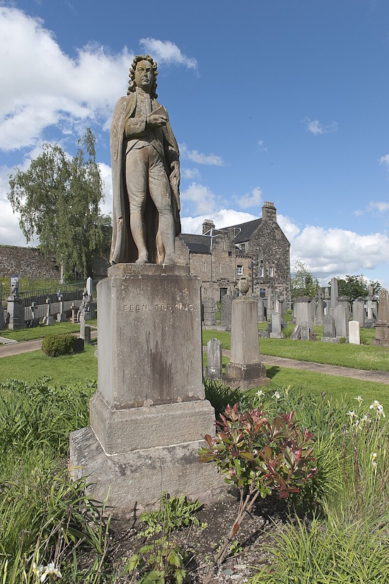 Ebenezer was a very popular preacher and a man of considerable force of character. He was noted for acting on principle with honesty and courage, seeming to soar into the empyrean in this photograph of his statue at the Valley Kirkyard in Stirling (click here to see the monument also erected to him in Stirling).