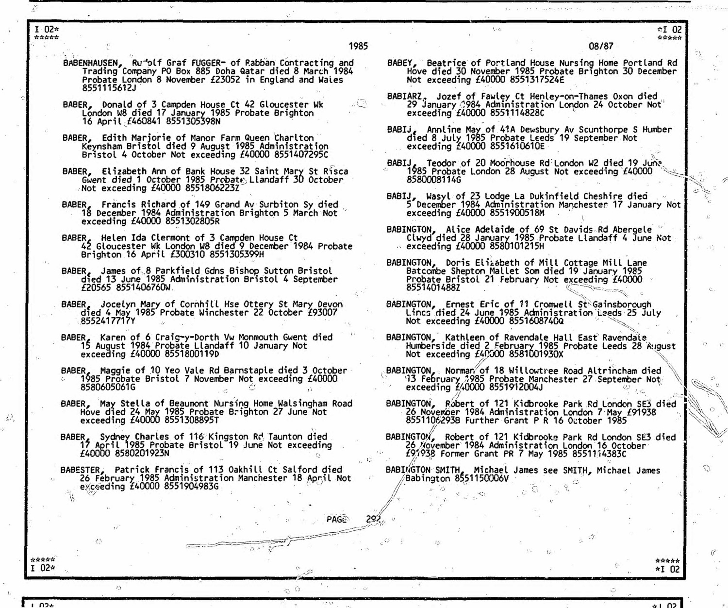Donald Baber (26 Nov 1910 – 17 Jan 1985) (m Q2 1951, Lewes, 5h 574) Probate |