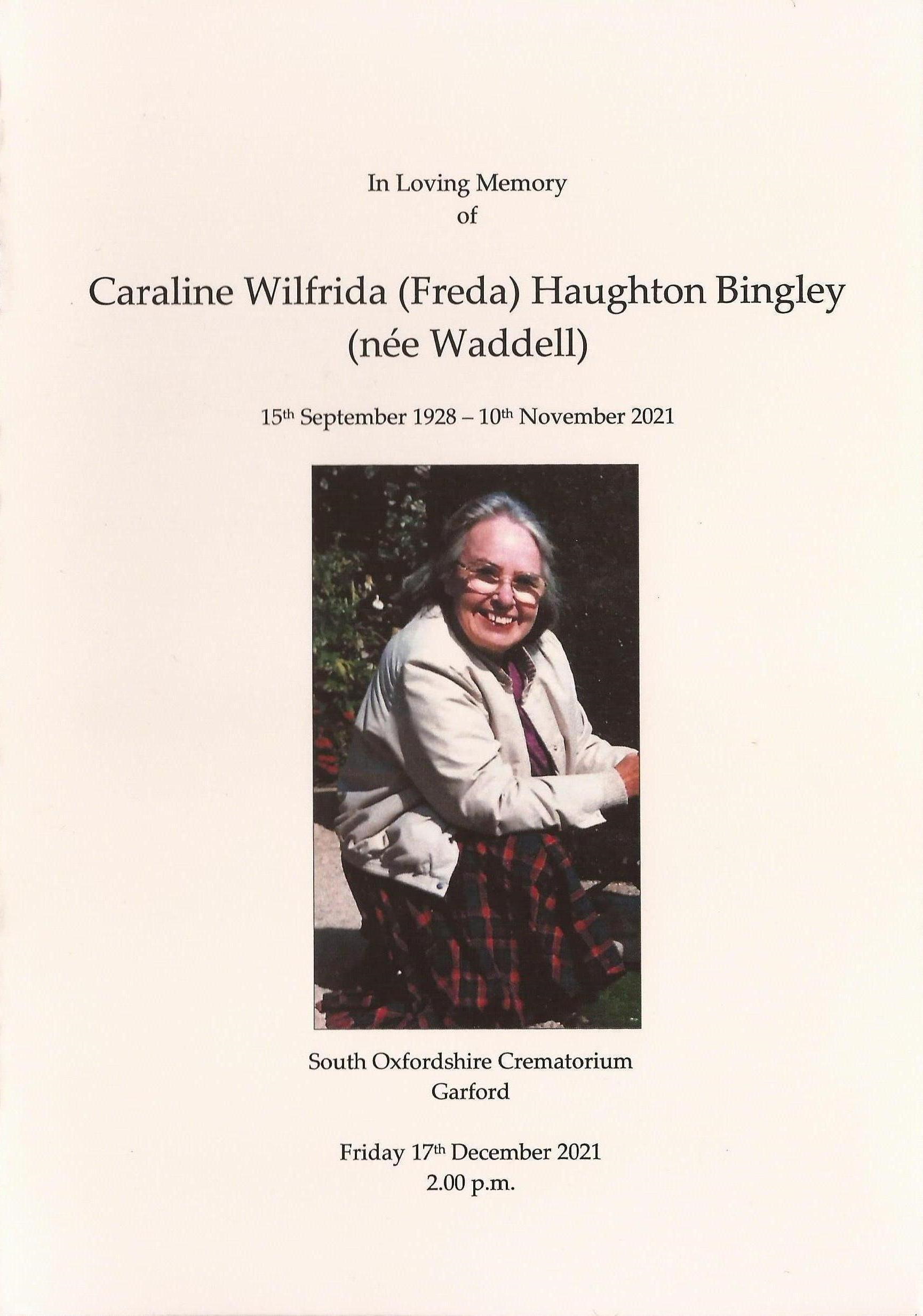 I’m very grateful to Runa Hanaghan for sending a copy (two copies, in fact) of Freda’s funeral service.