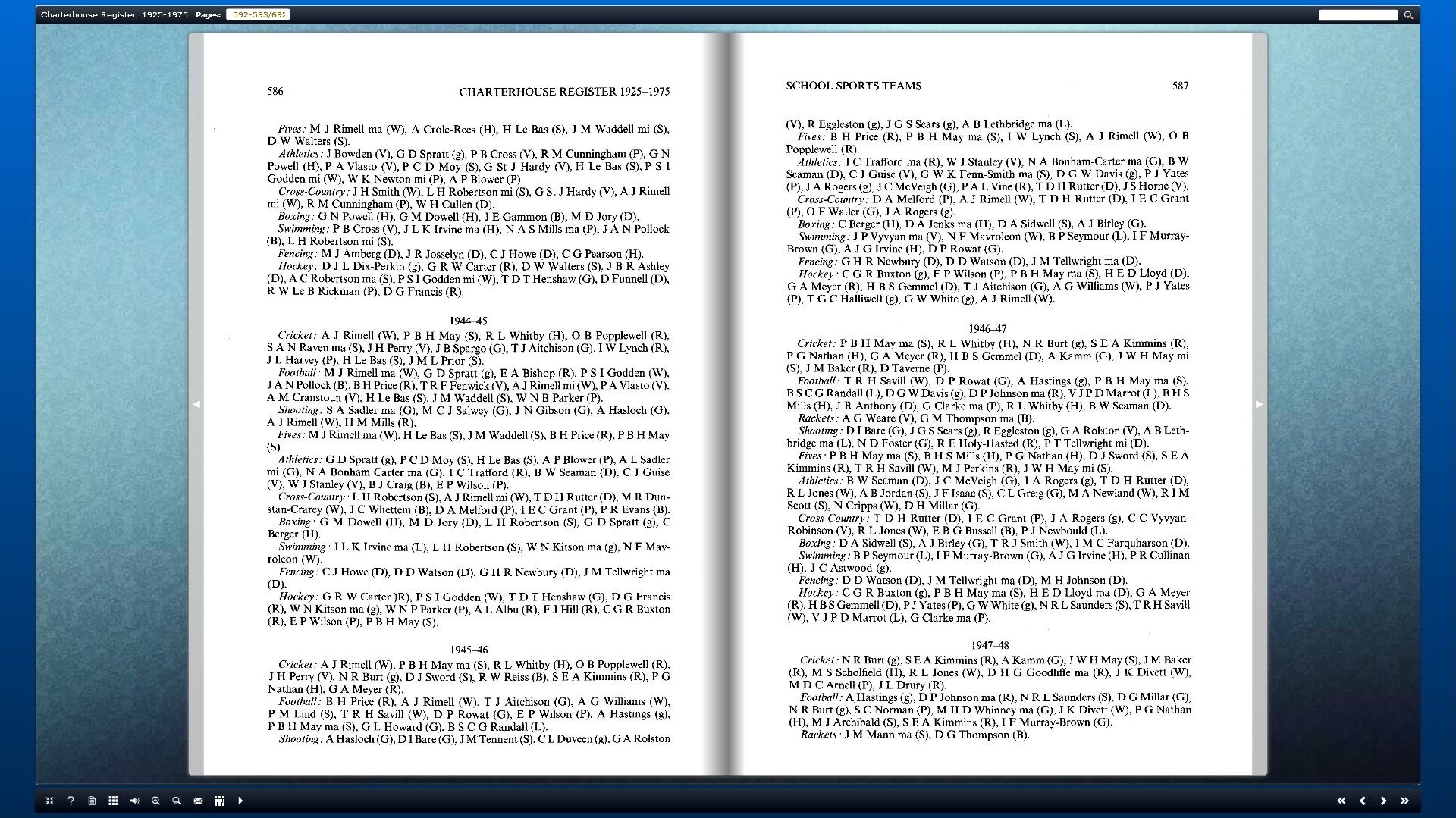 - Squash: 1945-46 (colours), 1946-47 (captain)