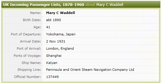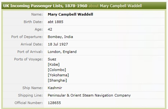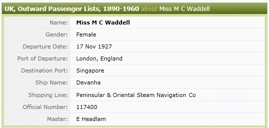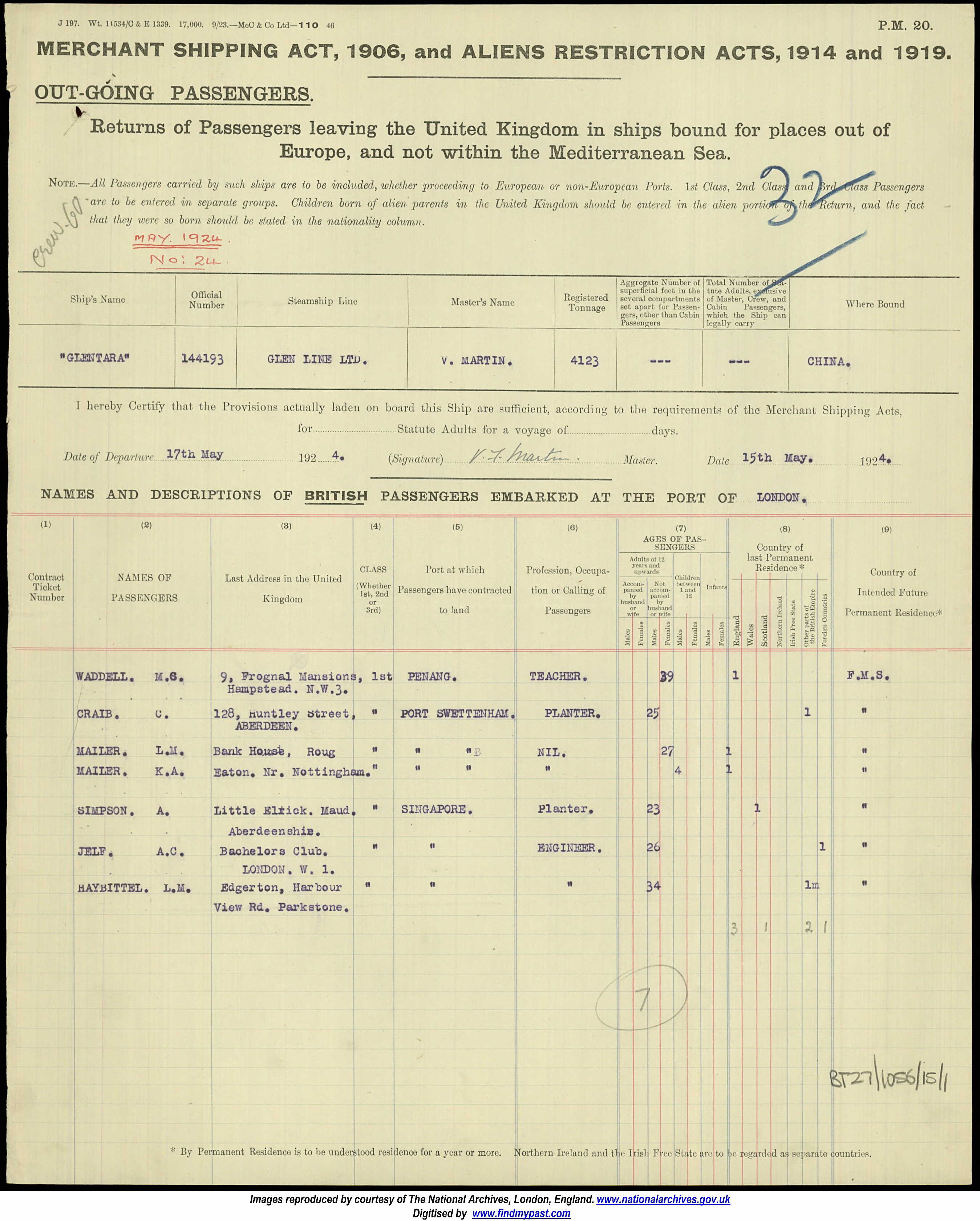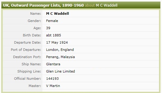 It's interesting for our present purposes to see from the record for 1924 that Mollie stayed quite some time with her mother, prior to setting off for Penang on 17 May that year (as per the table above).2