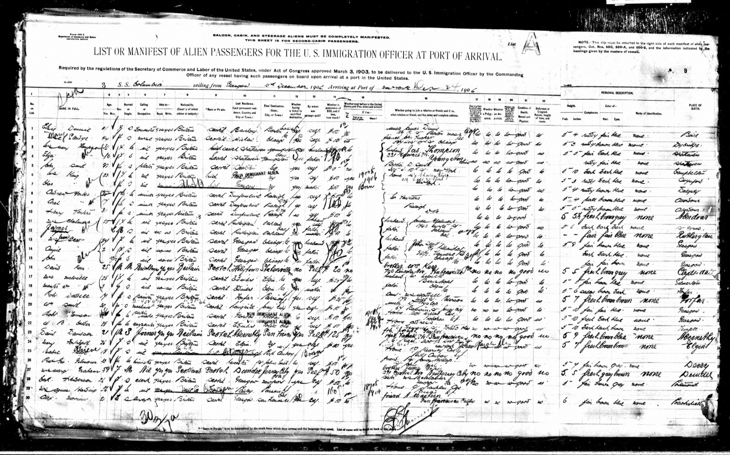 | arr New York from Glasgow | 24 Dec 1906 | link | ||