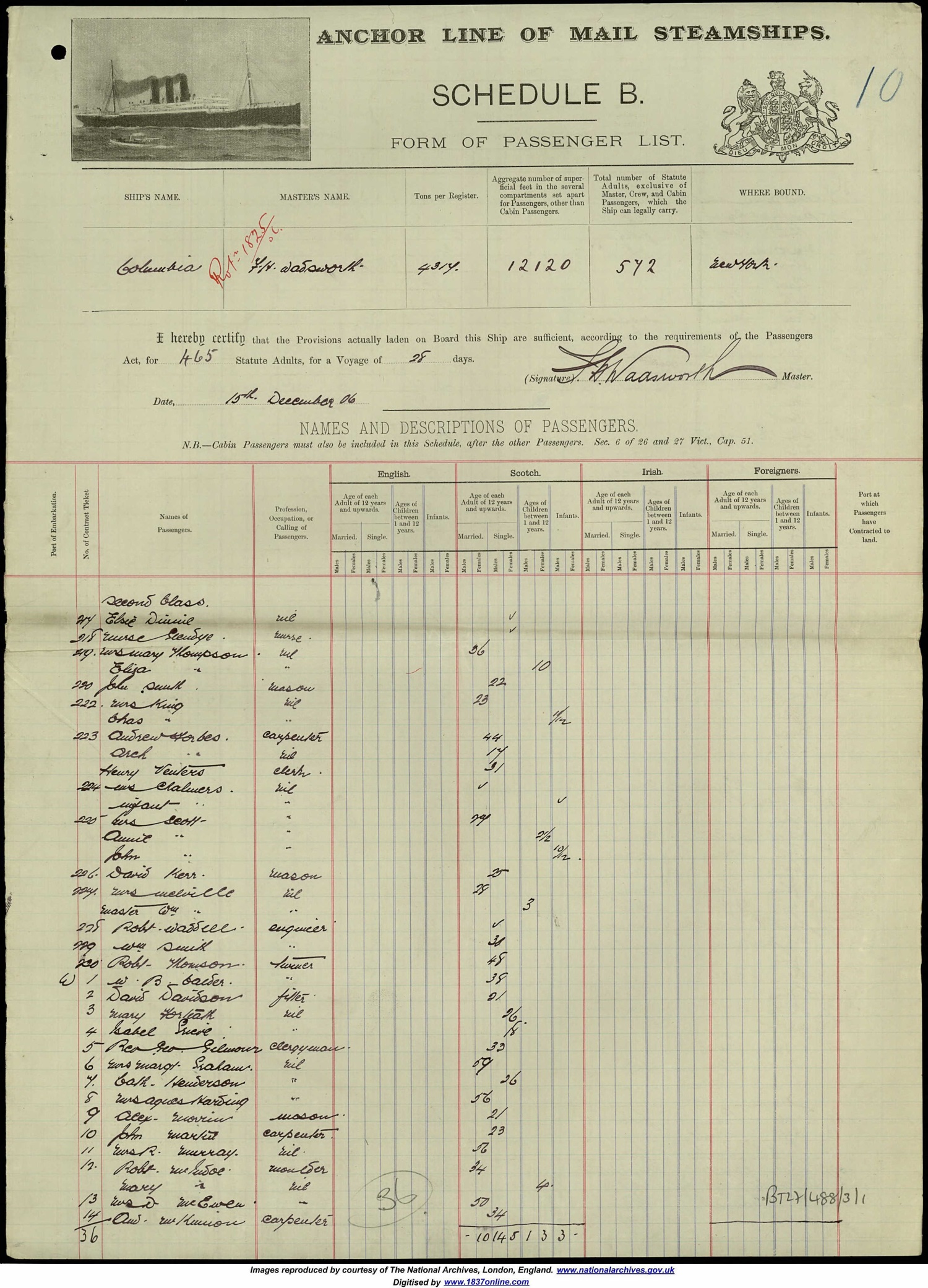 | 23 | dep Glasgow to New York | 15 Dec 1906 | link | link |