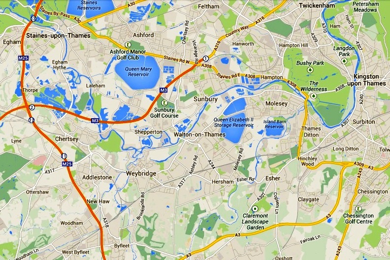 And so the family moved south – though the eldest son Walter had flown the nest years previously, and the next eldest, Robin, remained in the Chesterfield area. A flat was found in Maida Vale, or possibly in Kilburn (although the two areas, W9 and NW6 respectively, are in fact contiguous, as can be seen from a map of the London district codes, Victoria being located in SW1). Then, as Sandy narrates, the Luftwaffe arrived and the offices moved out of further harm's way to Weybridge. The household duly followed, first to a flat in Walton-on-Thames and then to a house in Weybridge itself, located close by, in a quiet corner of Surrey to the southwest of London.