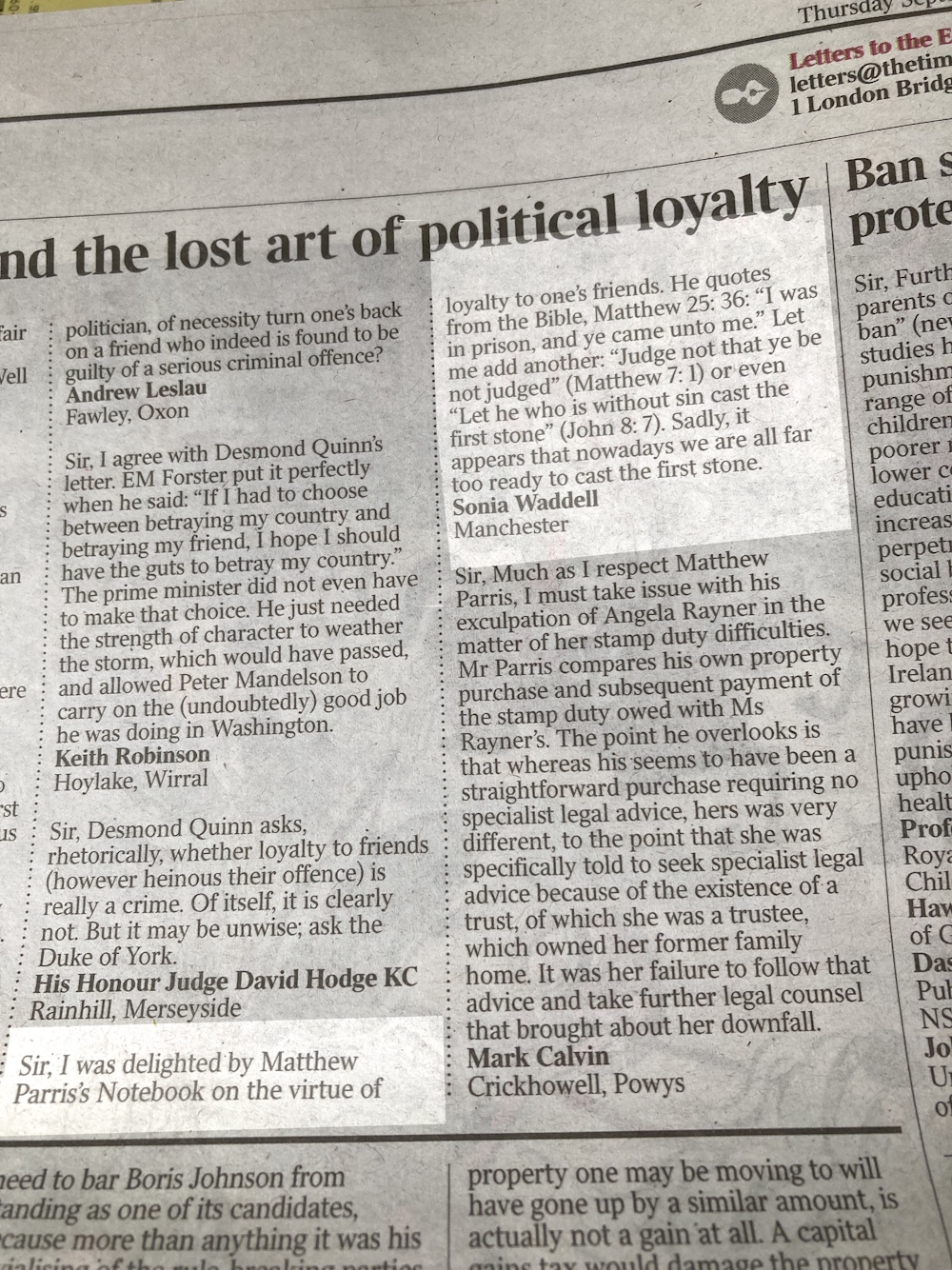 (18 Sep 2025) Among the flurry of letters published by The Times (Thu 18 Sep 2025 Letters to The Editor) debating the Prime Minister's actions, Sonia's letter stands out as a reminder of our own fallibility.