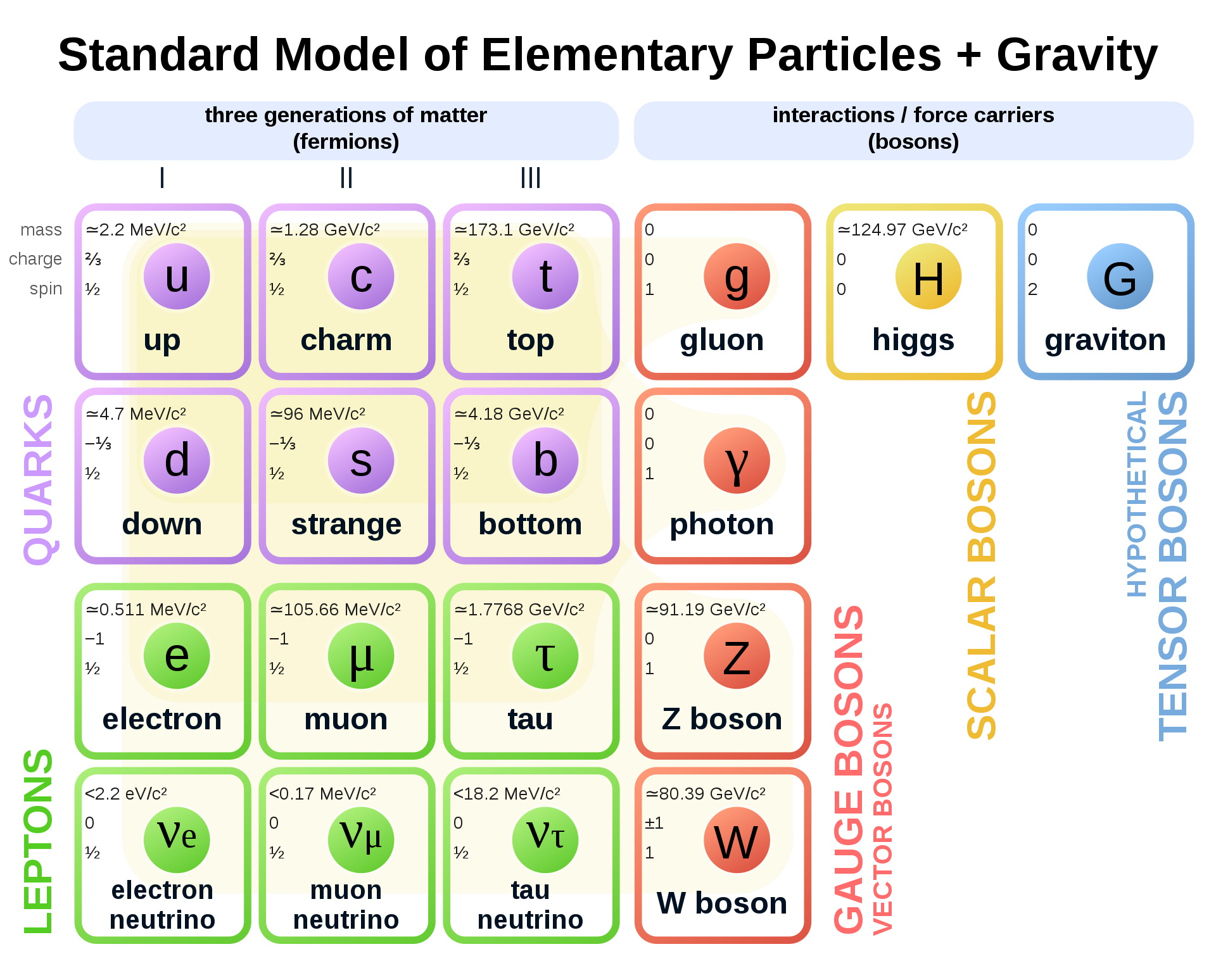 Note that matter particles listed can also be categorised by the fundamental forces that they experience.